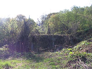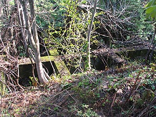 にわ山の麓に残るコンクリート構造物。軌道の終点に位置することから石炭搬出の施設の一部と思われます。