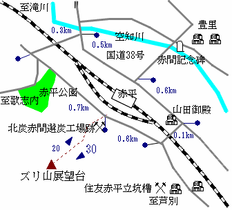 赤平は滝川より根室本線沿いに東に入った空知川河畔にある町です。赤平には幾つかの炭鉱がありましたがその代表格が住友赤平炭鉱です。明治28年北炭により開鉱した炭鉱は戦後住友系列の炭鉱となり、住友最後の主力鉱として採掘が続けられたものの残念ながら平成6年2月25日に閉山しました。赤平は他資本の炭鉱もありましたが基本的には住友の城下町でした。閉山後も住友系列の企業が残り市にサービスを提供し続けた点は独特で住友の優しさともいえるでしょう。そんな住友石炭鉱業もスーパー部門を切り離すなど合理化と資本の一極集中が進んでいるのが現状で赤平にいつまでこだわることができるのか厳しい状況が続いています。
