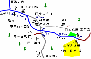 上砂川の最初の炭鉱の開発は明治29年の北炭の手による西山炭鉱でした。西山炭鉱は明治末期までが最盛期で、その後北炭は実地調査の結果、断層が多く、ガスの発生が多いため、この鉱区を三井鉱山に譲渡しました。三井鉱山は大正3年に第一坑の開発に着手し、大正〜昭和20年代に奈井江方面も含め一〜七坑、文殊坑、東山坑、奥奈井江坑、白山坑を順次開坑していきました。その後坑口の整理が行われる中で、近代化が図られ、昭和28年第一立坑、昭和42年中央立坑を建設されました。閉山は昭和62年。