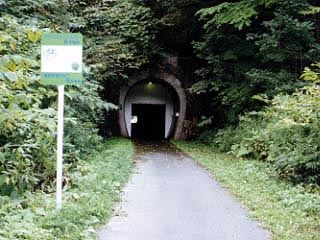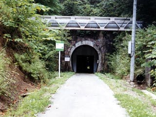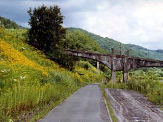 夕張鉄道の廃線跡は全長18kmのサイクリングロードとして一度は整備されましたが、スイッチバックのあった錦沢前後の1〜3号トンネルは通行止めとなり、大部分は廃道と化してしまいました。