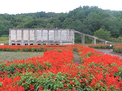 赤平市のズリ山階段の直下にはかつて北炭赤間炭鉱の選炭工場がありました。この場所が今、「赤い花大陸あかびらプロジェクト」により小さな楽しい公園に生まれ変わっています。昔の炭鉱の面影を感じながら、こんな場所を訪れてみることもいいのではないでしょうか。サルビアの花々だけでなく、すべてが赤をモチーフとして使い、金魚の赤い池や赤淡そば畑などもあるのです。