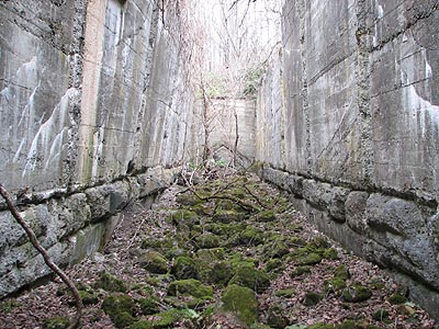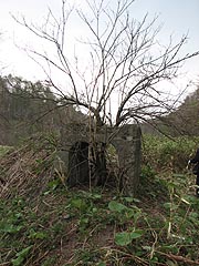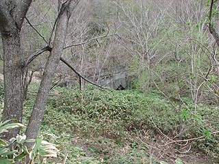 住友のマークのついた木造の選炭施設の基礎が沢の脇に残ります。三角形の穴を覗くと見事な苔の回廊が現れ感動しました。