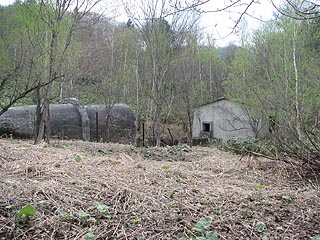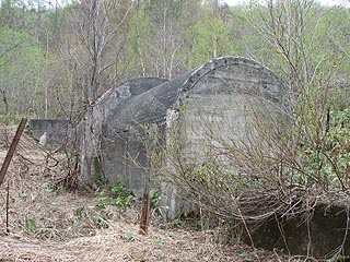 そしてその奥には住友奔別炭鉱の排気坑口がありました。扇風機の基礎と建物も残っていました。坑口の密閉には危険ガスの文字が赤字で記されていました。