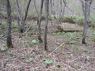 一段高い場所には住友唐松炭鉱の平屋の建物がありましたが、その基礎が埋もれながらも残っていました。