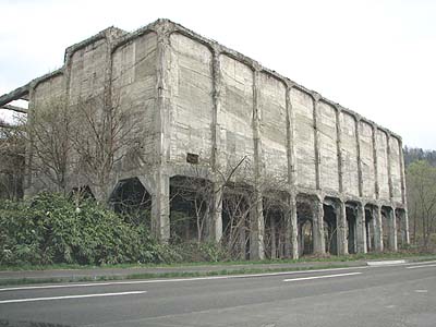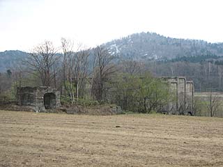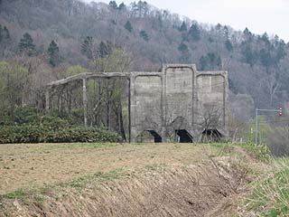 小平市街から達布市街を抜け小平らダムへ向かう道路脇にホッパーがあります。炭鉱の規模と比較して大きなホッパーは3連になっています。