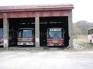 天塩炭鉱鉄道は昭和42年に鉄道の廃止後、バス事業者となり、現在でも留萌-達布間を一日4.5往復する路線バスと貸切バスを兼業しています。写真左はてんてつバス達布営業所、写真右は達布の車庫。