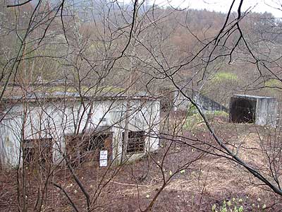 建屋内には扇風機の機械基礎とわずかな設備盤が残されていました。
