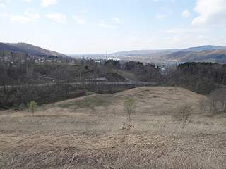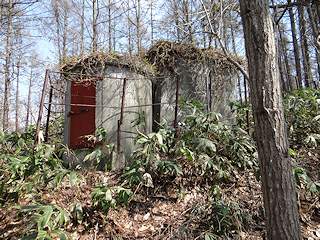 歌志内から新歌志内トンネルを抜け国道にぶつかる手前の右手(東側)に整地された草地が広がります。この一帯はかつての春光台の住宅が広がっていた場所でした。その後石炭の露天掘りが行われ今ではその面影を偲ぶものはほとんどありません。しかしながら登って行くと草地を過ぎた先の林の中に構造物がありました。近づいてみると春光台の配水施設でした。
