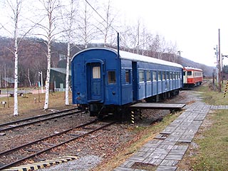 構内に配置された旧型客車と気動車(キハ22-69)。