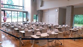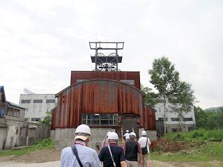 ガイド付き見学はここから始まります。ガイドの方の解説を10-15分程度聞いた後にヘルメットを付けて立坑櫓に向かいます。