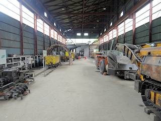 立坑櫓見学後ガイダンス施設に戻り、希望者のみ自走枠工場へ行くことができます。ガイダンス施設から離れているので人数が多い場合は徒歩、少ない場合は自分の車で移動することになります。炭鉱内で使われた機器類についての解説を聞くことができます。所要時間は30分程度。