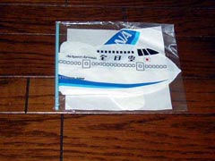 薄いビニールでできた飛行機方の風船です。一回使ってしまったらすぐにだめになってしまいそうな感じです。