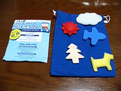袋に五つのものを入れ手触りと形からそのものが何であるかをあてる知育おもちゃ。