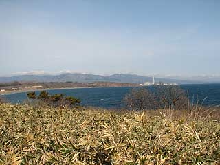 西は伊達市街を望みますが単調な海岸が続きます。遠くに見える煙突は伊達火力発電所。東の洞爺、豊浦方面は複雑な海岸線。