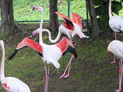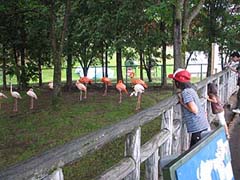 入口右手のととりの村の手前にはフラミンゴがいました。立っている姿はやはり足一本。不思議そうな顔をしている子供もいました。羽をひろげた姿はなかなか迫力があります。