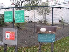 ダチョウとエミューは混合展示をしています。ダチョウの卵がニワトリの卵と比較展示されていて、ダチョウの卵が如何に大きいかがわかります。ダチョウもエミューも壁際でじっとしていて近づいてくることは残念ながらありませんでした。