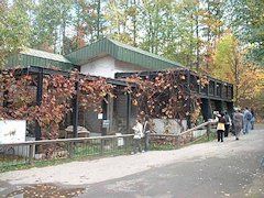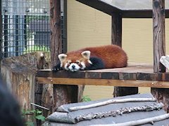 レッサーパンダ・小獣舎(レッサーパンダの吊り橋)。平成19年12月オープン。放飼場は檻もなくガラス越しに間近でレッサーパンダを観察することができます。また放飼場から通路を挟んだ反対側の木まで吊り橋が架けられていて運がいいとここを渡るレッサーパンダを見ることもできるでしょう。 放飼場でこちらを見つめるレッサーパンダと吊り橋でくつろぐレッサーパンダ。 レッサーパンダ小獣舎は小獣舎の檻を取り払い、改造したものです。写真はかつての小獣舎。