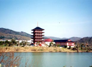 ■北の京芦別と空知川 空知川のほとりに北の京芦別はあります。 五重の塔と三十三間堂を模した建物が立ち並ぶ風景はとても不可思議です。 この建物はホテルとして営業しているので泊まってみるのもおもしろいかもしれません。