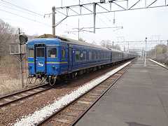 中部国際空港から新千歳空港へ朝一の飛行機で向かった際に、そういえばこの時間帯なら北斗星が千歳線を通ることを思い立ちレンタカーを借りた後一目散に美々駅へ、しばし待っていると若干遅れながらも北斗星はやって来ました。 ゆっくりと駅を通過する北斗星。