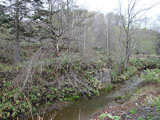 茶志内温泉は産化美唄川沿いの上村炭鉱へ向かう途中にありました。国土地理院の昭和51年10月17日の航空写真にはその様子がはっきり映っています。その後昭和57年の航空写真には橋は残るものの建物は映っていないため、その間に廃業したと思われます。