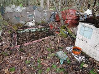 さらに進むと屋根の残骸がありました。奥には小さな男女別の浴槽もあり、小さな温泉であったことがわかります。