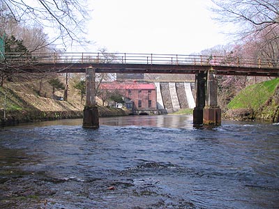 千歳第三発電所は北海道で初の重力式コンクリートダム。発電施設は堰堤の直下にあり煉瓦造。