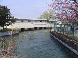 千歳川には明治、大正、昭和のに渡って苫小牧の製紙工場の電力供給を目的として5つの発電所が建設されました。第一発電所の竣工が明治43年5月、その年の9月に王子製紙苫小牧工場の操業が始まりました。その後、大正5年に第二発電所、大正7年に第三発電所、大正9年に第四発電所、そして昭和16年に第五発電所が建設されました。総発電量は36,800kw。そのうち第一発電所が25,400kwと全体の2/3を占めています。平成19年度に土木選奨土木遺産と経済産業省の近代化遺産として選定されています。
