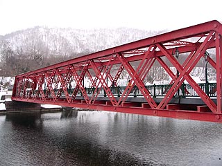 支笏湖から流れる千歳川には王子軽便鉄道の山線橋梁が架かります。支笏湖は不凍湖で通年安定した水の供給が見込めるため千歳川が水力発電の適地として選ばれたのです。