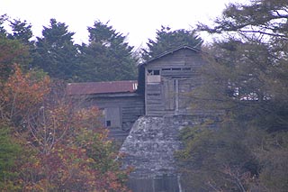 千歳第四発電所は最下流にある発電所で第三発電所と堰堤、発電所とも同じ様式。堰堤表面の玉石と煉瓦の対比が大変美しい。堰堤上部には木造の建物もありました。