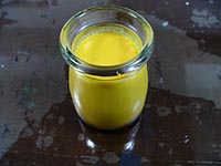 名前から想像していたのは大学生協で売っていた白い牛乳プリンでしたが実際には小さな牛乳瓶タイプに容器に黄色い普通の色のプリンが詰まっていて底にはカラメル層がありました。蓋を取って専用の長めのスプーンをでプリンを掬います。スプーンの上にのったプリンは柔らかく頼りなげで口に入れるととろけるようでした。プリンの中にはバニラビーンズも贅沢に入っていました。