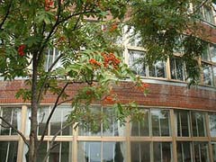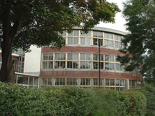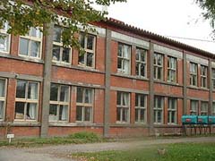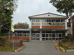 以前からどうしても行きたいと思っていながら札幌近郊にあるため足がなかなか向かなかった江別第三小学校に平成16年10月に行ってきました。昭和32年竣工の煉瓦造の円形校舎は今も現役で風格のある建物でした。周囲も郷土資料館、飛鳥山公園など緑が多く環境もすばらしい場所でした。校舎は道路と隣接していて構内に入ることなく円形校舎を見学することができます。
