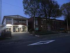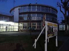 見学会が終わった後に改めて夜の校舎を再訪問。役割を終えた校舎の玄関の明かりが眩しかったです。