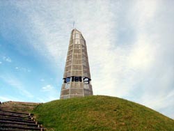 また勝山館から古い展望台を過ぎさらに登っていくとあるのが北海道夜明けの塔。鉄骨造の展望台でちょっとだけ恐怖感もありますが上からの展望は雄大です。