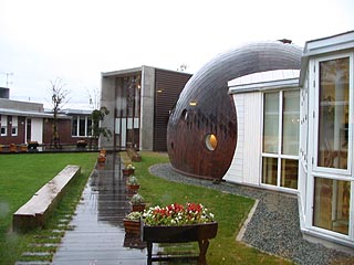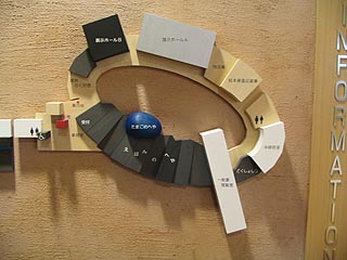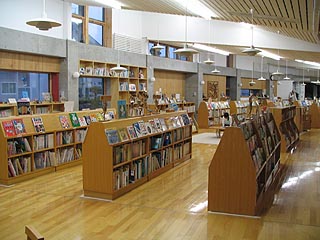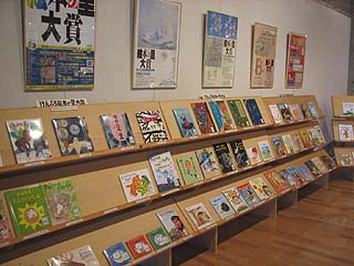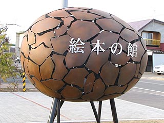 平成16年に完成した新しい絵本の館。建物は楕円状に図書スペース、展示室などが配置されています。