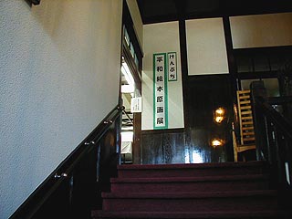 初代絵本の館。木造2階建ての魅力的な建物でした。1階に図書館スペースがあり、2階には展示室が配置されています。私が訪問した時には「けんぶち平和絵本原画展」が開催されていました。