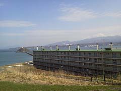 岬のすぐ脇には市営住宅があるのも不思議な風景。風が強い日が多いのではないかと人事ながら不安になります。室蘭港の湾口にある手前の小さな島はエビス島、大きな島は大黒島。