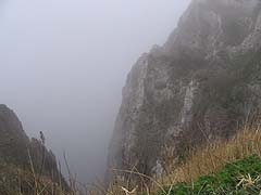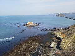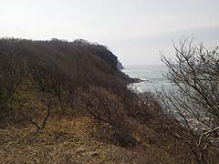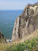 陸路からの眺めは小さな谷の一角からの風景のため、全体の様相を確かめることは叶いませんが、海からは屏風の名の通り、断崖絶壁が続きます。断崖は標高100mから徐々に高度を下げ絵鞆岬に至ります。霧の日には海は望めませんでしたが、晴れた日は太平洋を見渡すことができます。