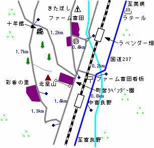 国道237号からファーム富田への道は旭川からですと中富良野市街に入った直後に右折することになります。案内板もありますが見逃しやすいので気をつけましょう。夏のラベンダーシーズンの土日は大渋滞します。渋滞を避けるためには前もって富良野線を渡りファーム富田の北側から回りこんでいくのがいいでしょう。