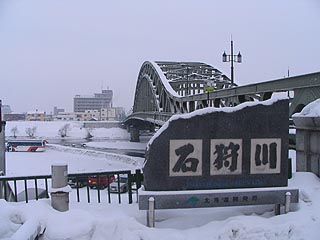北海道遺産にも指定された旭橋の河川敷が会場です。