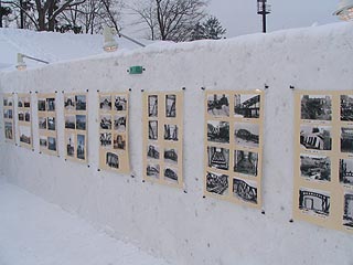 ぽかぽか村の裏手の雪のギャラリーでは旭橋の歴史を写真で紹介していました。