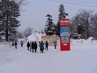 常磐公園中央は「カムイミンタラ2007」〜雪・氷・あかり〜の会場になっています。昼間にはなんてこともない風景でしたが夜には幻想的になるのでしょう。夜に是非とも一度訪れてみたいと思いました。