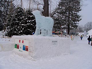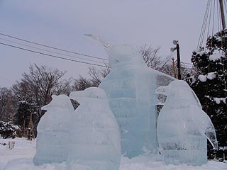 氷像は旭山動物園のシロクマやペンギンがお出迎え。。