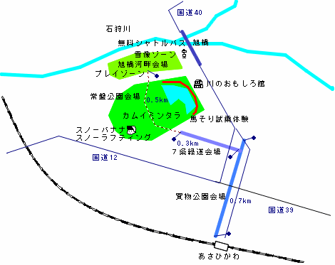 子連れの場合は旭橋河畔会場ではプレイゾーンがあり、ミニ列車が楽しめます。また常磐際公園会場の馬そり体験やスノーバナナ、スノーラフティングも子供には良いでしょう。そしてやはり旭山動物園、旭山雪の村を併せて訪問するのがお薦めです。川のおもしろ館も子供向けの施設で暖をとれる屋内施設は実は貴重です。