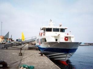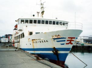 平成13年5月にフェリーおろろんは引退し、新造船おろろん2が就航しました。1等、2等があり、1等は高速船とほぼ同運賃。 のんびりはしるので海鳥を観察するのに最適です。 羽幌−焼尻の中間地点付近では餌を探す海鳥を観察できます。 写真は平成13年GWのフェリーおろろん最後の雄姿。