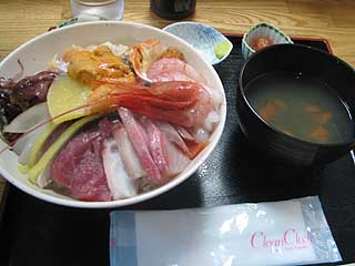 そして海鮮丼。海鮮丼は甘エビ、ウニなどがずらりと盛ってあるのは壮観です。これで1,200円ということでコストパフォーマンスは非常に優れています。海鮮丼の盛りを若干少なくした羽幌丼は800円。