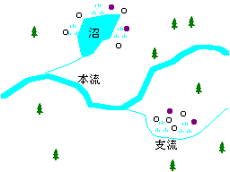 ということでやはり本流の流れが早い河川沿いはなかなかやはり見つけるのは難しいでしょう。 わずかに川が大きく蛇行する時の内側の岸は土砂が堆積するので湿地になり水芭蕉の群落もある可能性があります。 そしてやはりねらい目は小さな川です。 小さな川沿いは流れと水のよどみ具合が適度で水芭蕉の生育に適しています。 特に小さな川が大きくカーブする場所などには高確率で群落があります。 それともうひとつは湖沼の湖岸です。 まず確実に水芭蕉を発見できるでしょう。