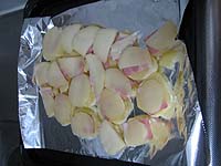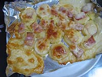 カチョカバロをスライスしてベーコンと共にオーブンへ。