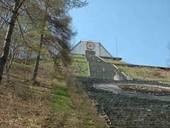 途中まで階段を登ると金網がありその上には行くことはできませんでした。最上部のピラミッド部分は鋼製の部分もあり劣化が激しく以前から立ち入り禁止の措置がとられていた模様です。見下ろすと怖いくらいの高さと勾配を感じます。