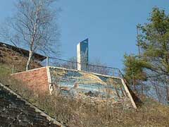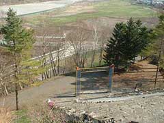 国道237号線を平取市街から沙流川を渡り走っていると、沙流川を挟んだ向こうの山にあるのがこのハヨピラ公園です。その不思議な構造物はUFO教団CBAがアイヌの神、オキクルミの降臨の伝説が残る平取の地にUFOを呼ぶために造った基地でCBA自身の手により建設されました。昭和42年の完成後CBAの力は急速に衰え荒れるに任せた状態でしたが平取町がこの地の寄付を受け一旦はハヨピラ自然公園として再出発しました。しかしながら今ではほとんど訪れる人もなく災害の影響もあり立ち入り禁止の措置がとられています。