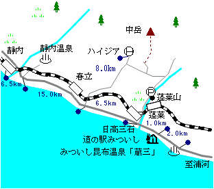 (交通:苫小牧-[JR180分]-浦河-[JR9分]-日高幌別-[JR14分]-様似)